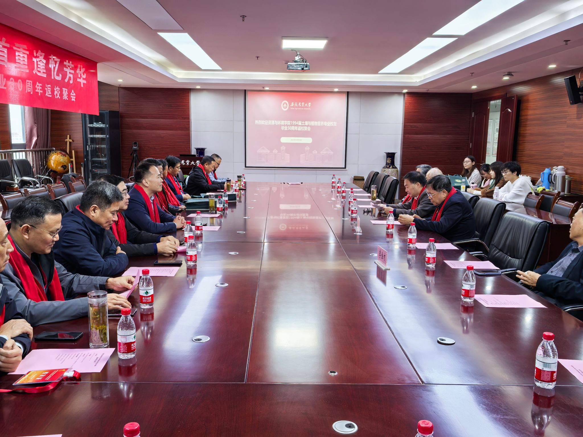 本网讯 云轻日暖秋意浓,卅载重聚安农情。10月19日,资源与环境学院1994届土壤与植物营养专业17名校友在毕业30周年之际重返母校,回忆往昔求学时光,共叙大学同窗情谊。