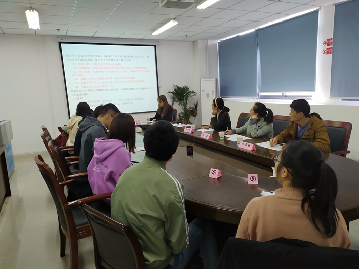 职场模拟,提升学生就业竞争力。11月14日,理学院在641会议室举行2019年职场模拟面试大赛。经过初赛选拔,最终9名选手脱颖而出,晋级决赛。比赛以无领导小组讨论形式进行,选手们围绕 “促进大学生就业”的问题,从不同角度展开了深入讨论,有理有据地阐述了各自的观点。