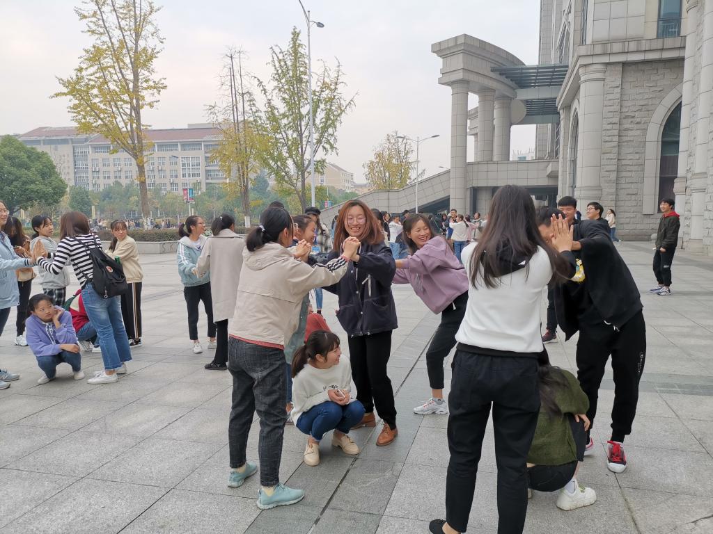 活动伊始,全体学生在教练的指导下开始“破冰活动”,同学们通过自我介绍,加强相互了解,打破彼此间隔阂,营造融洽团队氛围;之后相继开展了“你画我猜”、“凑钱”、“松鼠抱树”和“搭桥过河”等一系列拓展互动。活动中,大家积极参与,齐心协力,默契配合,认真总结活动经验,分享感悟,努力培养“精神共同体”。
