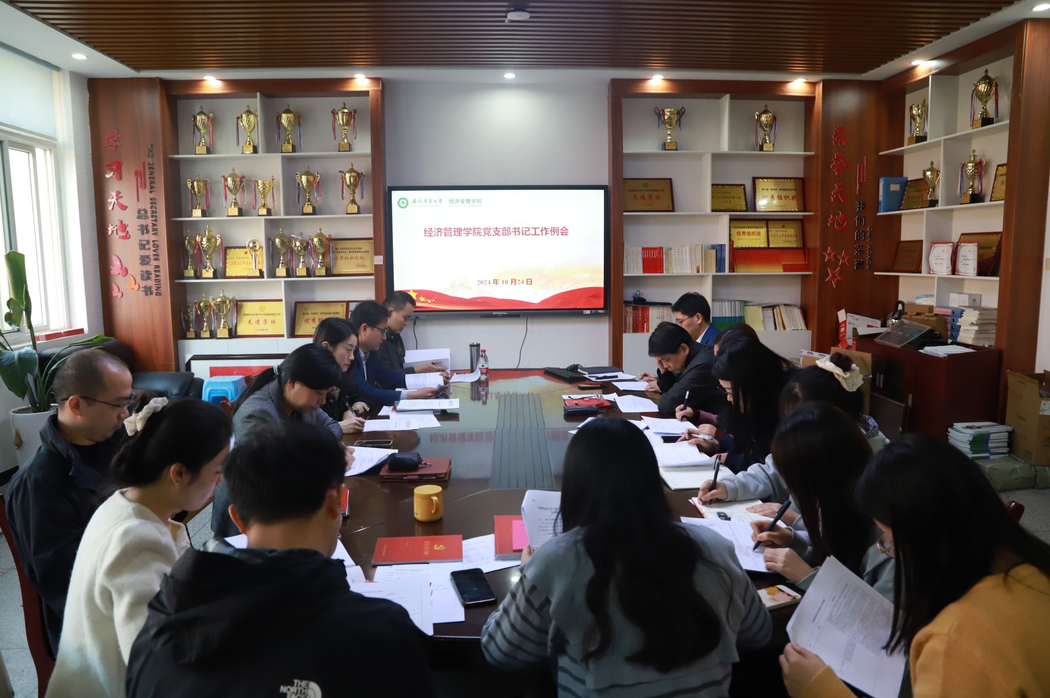 本网讯 10月24日下午,经济管理学院党支部书记工作例会在经管楼302会议室召开。学院党委副书记、纪委书记周涛、全体党支部书记参加会议。会议由院党委书记武晓蓓主持。