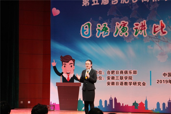 本次大赛由合肥日商俱乐部主办,安徽三联学院、安徽日语教学研究会承办。包括安徽大学、安徽农业大学、合肥学院、安徽外国语学院等多所高校日语专业师生和在皖四十余家日本企业代表等出席观摩。