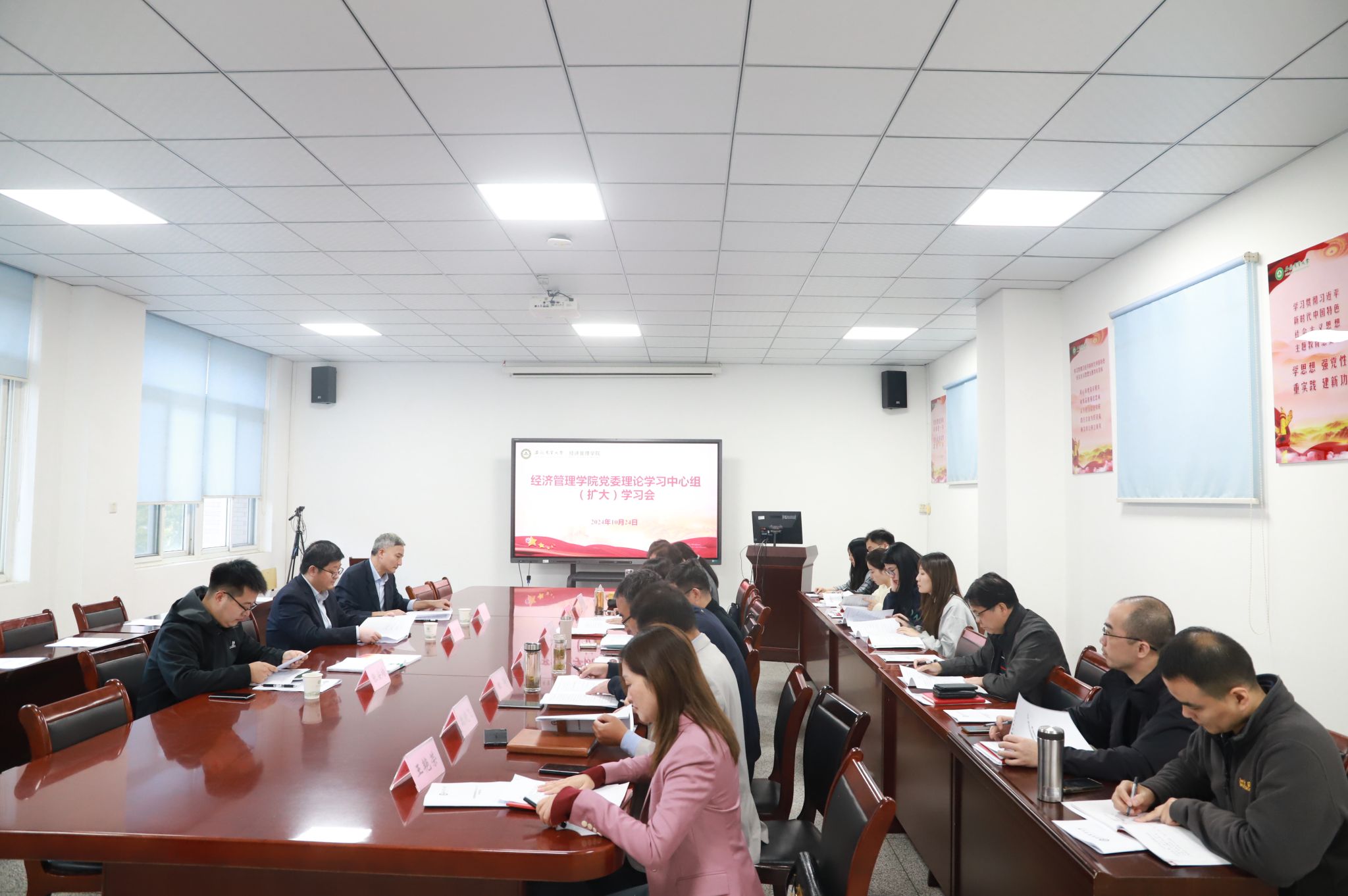 本网讯 10月24日下午,经济管理学院在经管楼304会议室召开党委理论学习中心组(扩大)学习会。学院领导班子、党委委员、党支部书记参加了本次会议。组织部常务副部长、马克思主义学院党委书记韩弥明、农学院党委书记洪志生、联络员张安培到场列席旁听。会议由学院党委书记武晓蓓主持。
