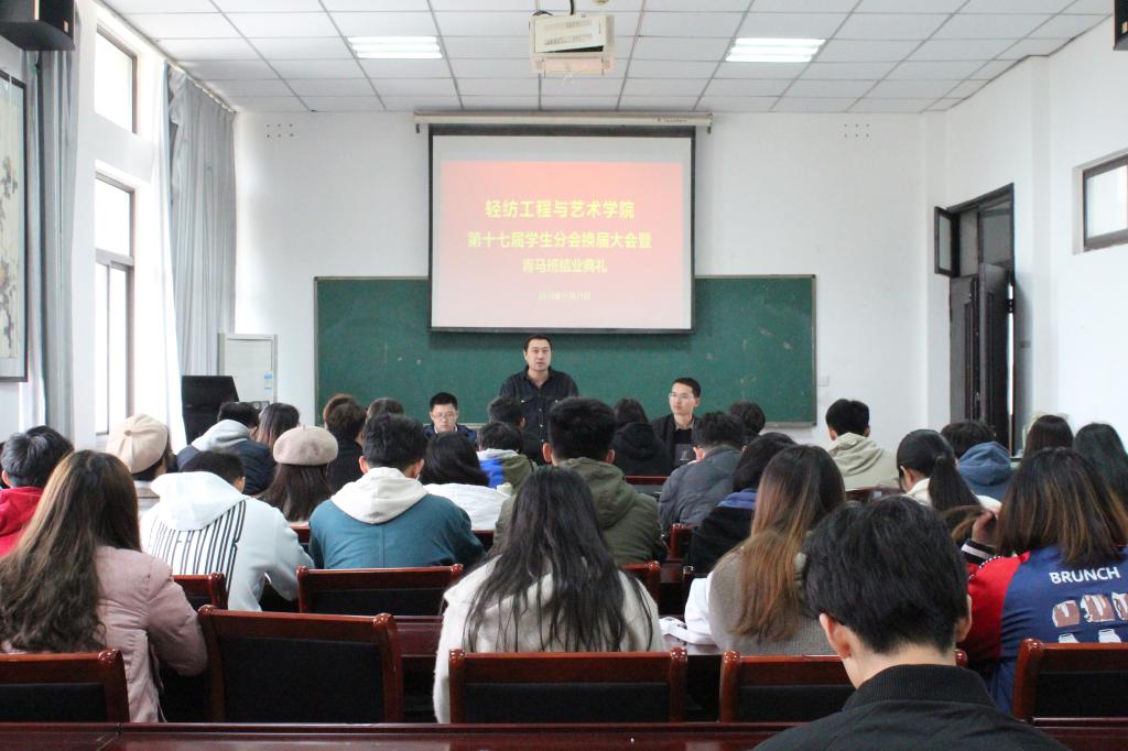 本网讯 11月21日,轻纺工程与艺术学院在学院四楼会议室举办了第十七届学生分会换届大会暨青马班结业典礼。学院党委副书记吕剑秋、团委老师出席了会议,院学生会干部、青马班成员参加了本次活动。