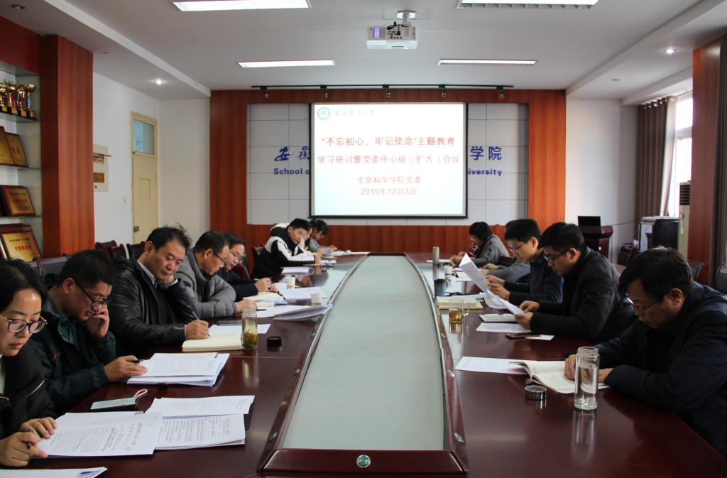 本网讯 12月3日下午,生命科学学院在十教418会议室召开主题教育学习研讨暨党委中心组(扩大)会,围绕学习贯彻党的十九届四中全会精神以及召开专题民主生活会的前期准备开展学习和交流研讨。学院领导班子、党委委员、党支部书记、副科级以上人员参加会议。会议由学院党委书记张健主持。