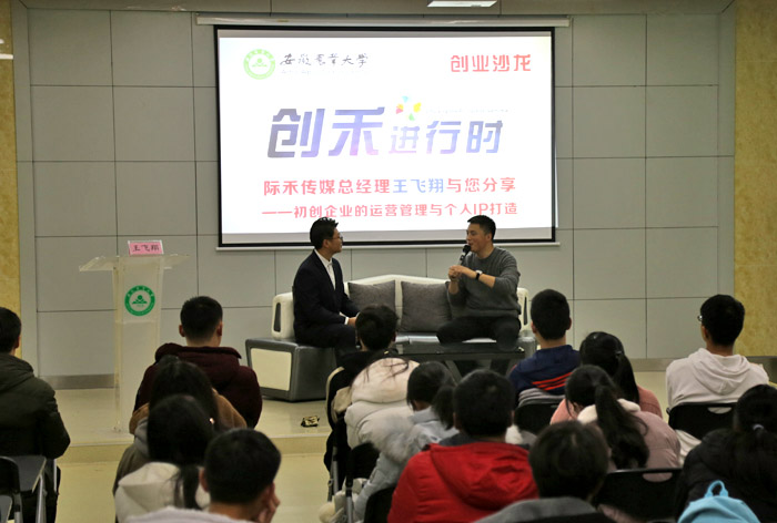 王飞翔从初创企业特点,运营与销售、管理与规划以及个人IP打造等四个方面向同学们介绍了有关创业的相关知识与经验。他从初创企业的特性和发展切题,结合自己这几年的创业历程,深入浅出地说明了运营和营销的区别,以及如何完善企业管理体系、多人合作财务管理与分工,怎样提升创业者的素质以及打造个人IP等,并指出商机无处不在且与艰辛并存,作为一名创业者只有不断付出才可能取得成功。