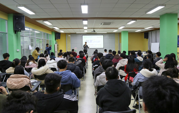 本网讯 12月6日晚,我校“创禾进行时”首场沙龙邀请校友、际禾传媒总经理王飞翔在大学生创客空间A区路演大厅为创客带来了一场主题为“初创企业的运营管理与个人IP打造”的创业沙龙。我校创客俱乐部成员以及对创业感兴趣的同学等近100人参加了沙龙。