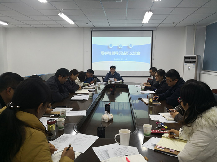 本网讯12月17日中午,为进一步扎实推进学院辅导员工作和辅导员队伍建设,在理学院会议室召开辅导员工作例会暨辅导员考核工作推进会,会议由院党委副书记、副院长韩弥明主持,2016-2019级各专业辅导员和2019届毕业班部分辅导员列席参会。