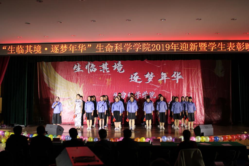 本网讯 12月17日晚,生命科学学院在欣苑四楼大学生活动中心举办“生临其境 逐梦年华”迎新暨学生表彰晚会,校党委宣传部常务副部长朱绍友、校学生处处长彭庆刚、校招生就业处处长刘海涛、校团委副书记任琪应邀参加并为优秀学生代表颁奖,学院党政领导、专职辅导员应邀出席。