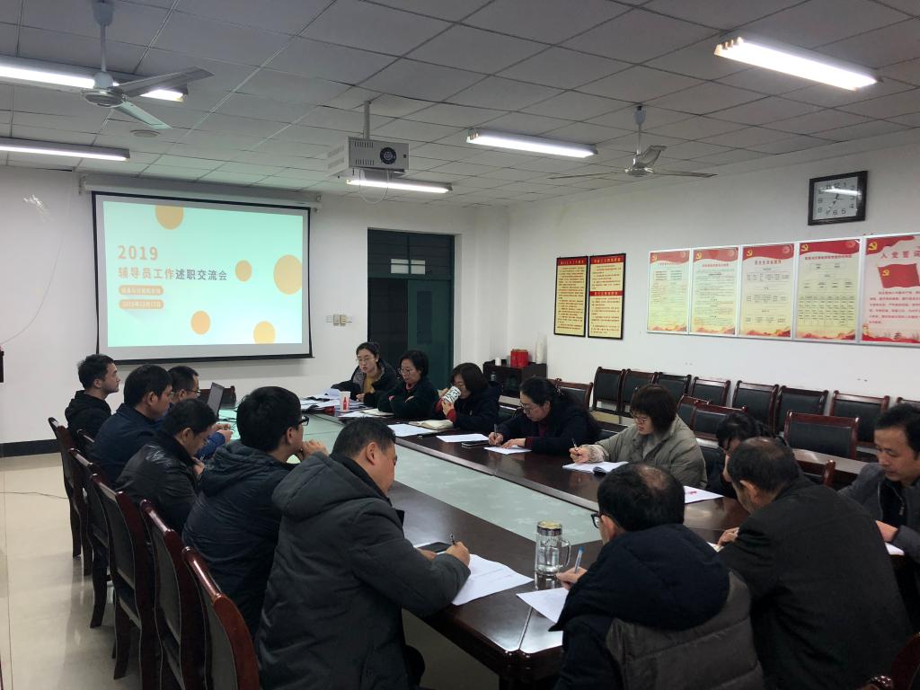 本网讯 12月17日中午,信息与计算机学院在经计楼406会议室召开2019年度专兼职辅导员工作述职交流会,学院党委书记曹俊主持会议,全体专兼职辅导员参加了会议。
