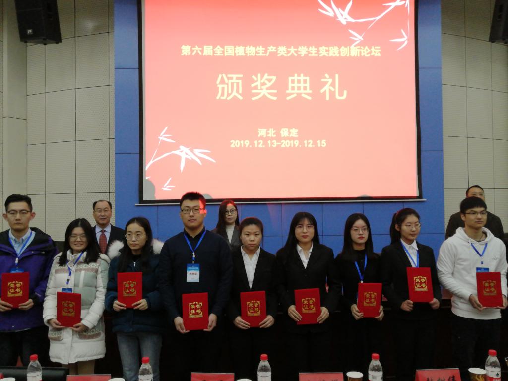 本网讯 近日,第六届“全国植物生产类大学生实践创新论坛暨大学生创新创业训练计划成果展”在河北农业大学成功举办。本次论坛共有浙江大学、广西大学、南京农业大学、山东农业大学、华南农业大学等来自全国拥有国家级植物生产类实验教学中心的农林高校师生参加。生命科学学院副院长江海洋带队参赛。