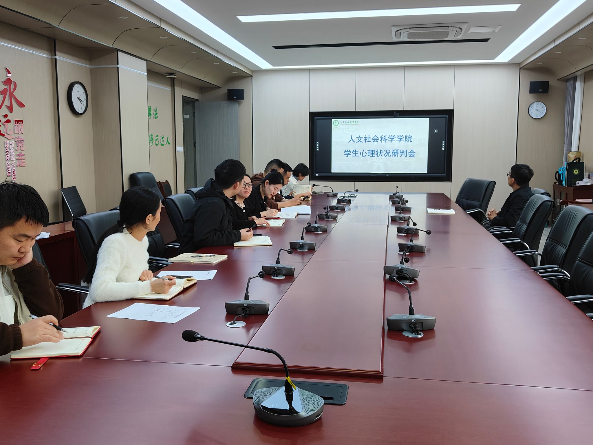 本网讯 为确保2024级大学生心理健康普查效果,全面掌握学生心理健康状况,完善心理健康档案,提升心理约谈水平,11月4日下午,人文社会科学学院在人文楼206会议室召开学生心理健康教育工作研判会,学院全体辅导员参加会议,会议由学院党委副书记、纪委书记孙辉主持。