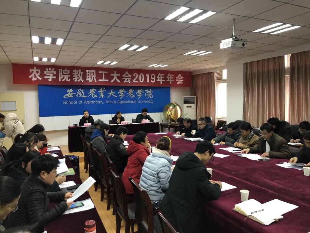 本网讯12月25日下午3点,农学院于十教518会议室召开农学院教职工大会2019年年会,学院领导班子和全体教职工参加会议,会议由学院党委副书记、副院长鄢高翔主持。