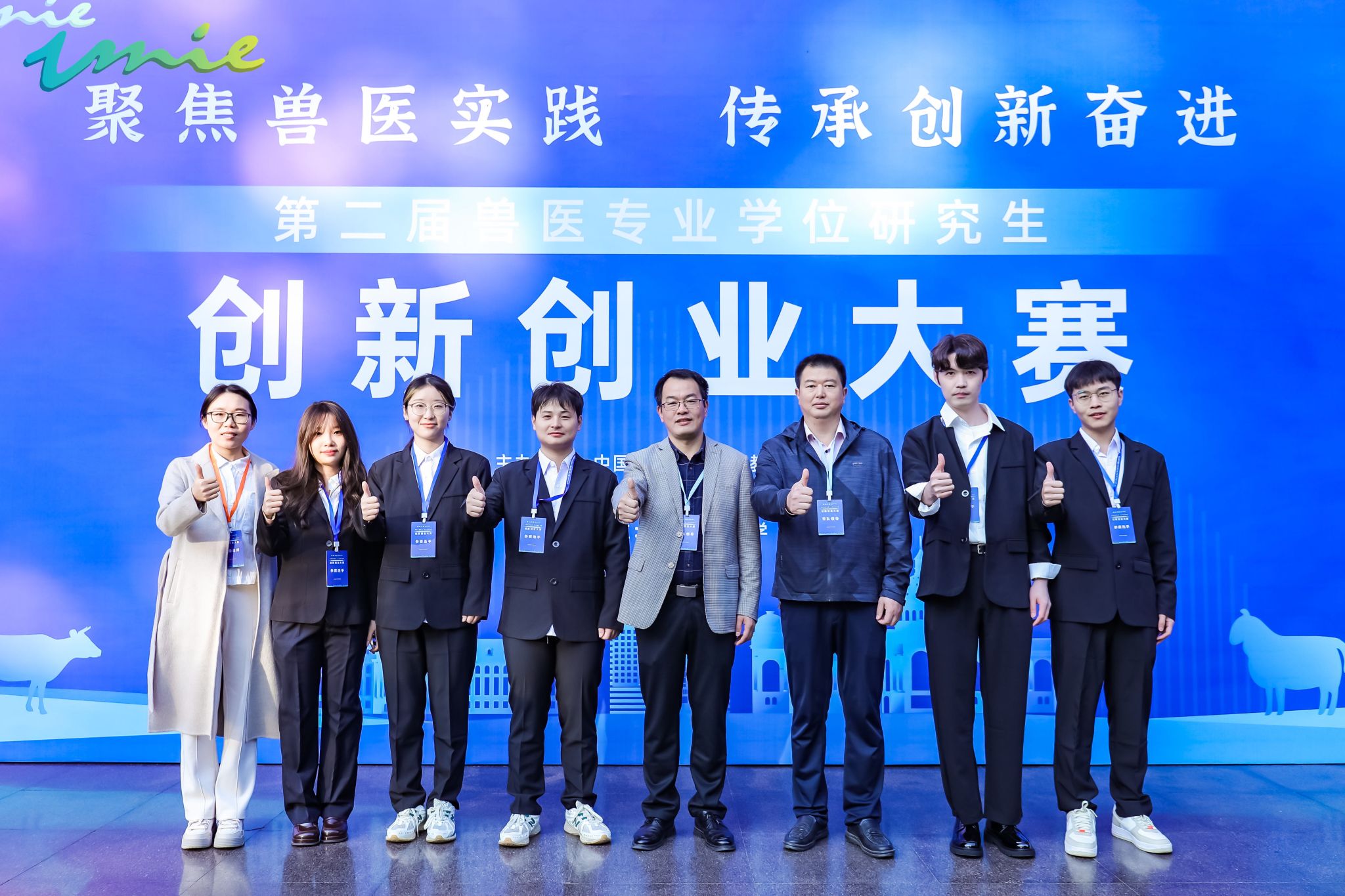 本次大赛吸引了来自全国49所高校和科研单位64支创新创业组参赛队伍,500余名师生参与其中。大赛分设创新组和创业组,比赛内容包括作品论述汇报和专业素养展示两个环节。经过一天激烈角逐,队长郑庆雨同学与队员胡孝立、史明豪、刘冰心通力合作,在创业赛道21个作品中脱颖而出,以总分第二名的成绩荣获一等奖。成绩的取得将进一步提升学院兽医专业学位研究生实践创新能力培养,推动学院应用型兽医人才培养,促进兽医专业学位教育高质量发展。(图文/郑庆雨 编辑/杜亚娜 预审/吴永红 审核/郑雪林)