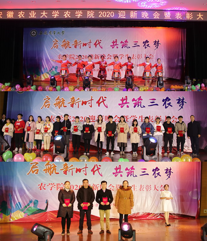 本网讯 12月25日晚,农学院在欣苑四楼学生活动中心举办“启航新时代,共筑三农梦”迎新暨师生表彰大会。学工部部长彭庆刚,学院党委书记汪凤莲,院党委副书记、副院长鄢高翔,校直机关、各学院代表老师应邀出席,我院师生300余人参加了本次晚会。