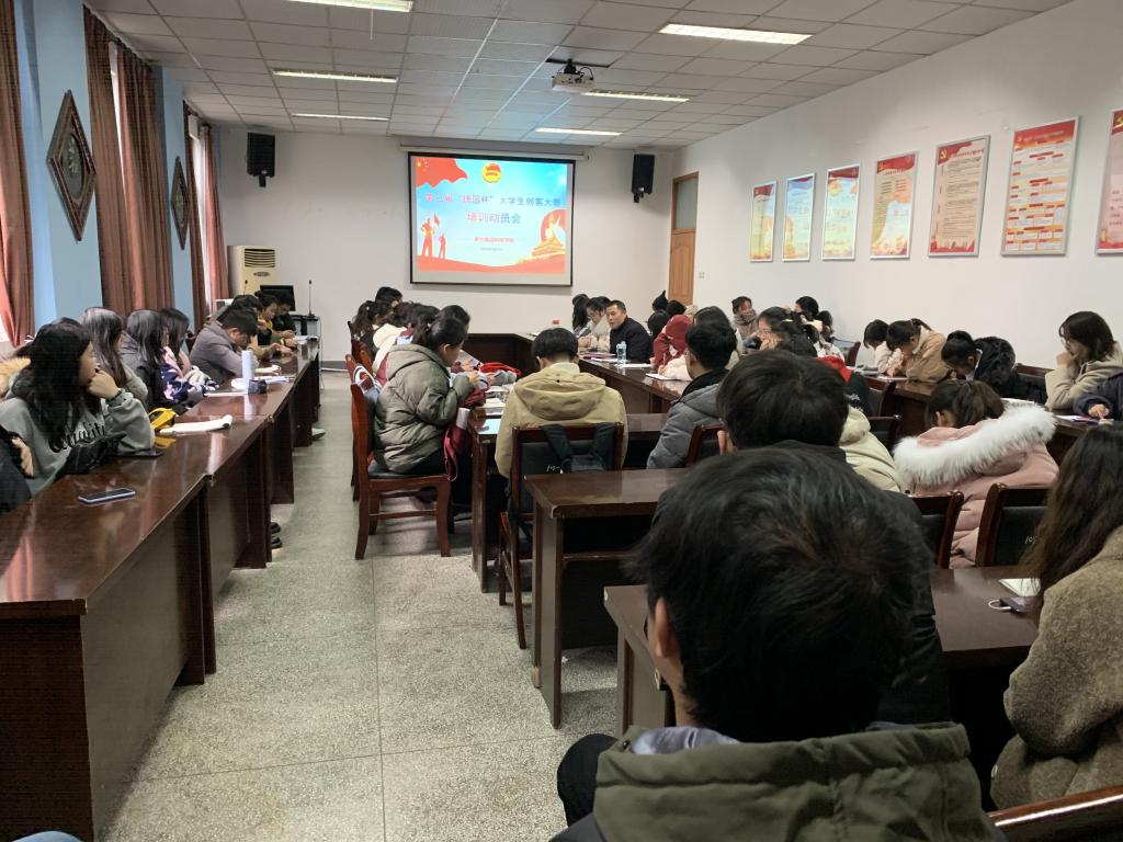 本网讯1月2日,茶与食品科技学院举办第三届“捷迅杯”大学生创客大赛培训动员会。学院党委副书记、纪委书记、副院长张国学、各专业团支部书记、科创委员、学科竞赛获奖学生代表以及对创新创业感兴趣的部分同学参加了会议。会议由学院团委老师主持。