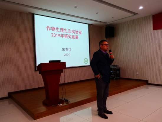 随后,宋有洪对“作物生理生态与模拟”团队2019年度研究工作进行了总结,围绕一年来在科学研究、队伍建设等方面取得的进展做了简单介绍;团队博士后、研究生和大学生创新创业项目组15位同学依次进行了2019年研究进展及2020年工作计划的汇报,在场老师对研究中存在的问题进行了分析与指导。学术年会气氛热烈,师生们感觉收获颇丰,既享受了学术大餐、也加深了校内外的合作交流,同时对多学科的交叉融合也有了更深的体会。学生们对各自试验中的机理研究不足以及2020年的研究重点更加明确,尤其需要突出新技术的使用与思考学科交叉融合。共60余人参加了2019年度学术年会。(孙未伟、王志伟 通讯员:仇飞)