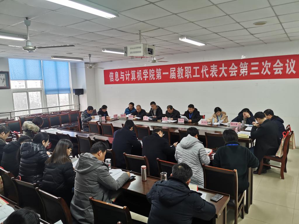 1月6日,会议第四阶段会议继续进行。与会代表审议并通过了学院2019年工作报告,通过了学院2019年财务工作报告,通过了《信息与计算机学院教职工年度考核试行办法》和《信息与计算机学院奖励性绩效津贴分配办法》。