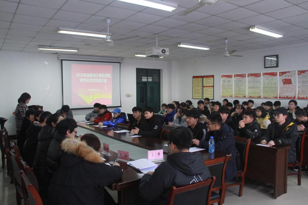 本网讯 为了帮助新转入我院的学生尽快适应新环境,1月8日下午,信息与计算机学院在经计楼406会议室召开2019-2020学年转专业学生欢迎大会。学院党委书记曹俊、副院长张武、办公室老师、相关班级辅导员以及转入的58位同学参加了会议。