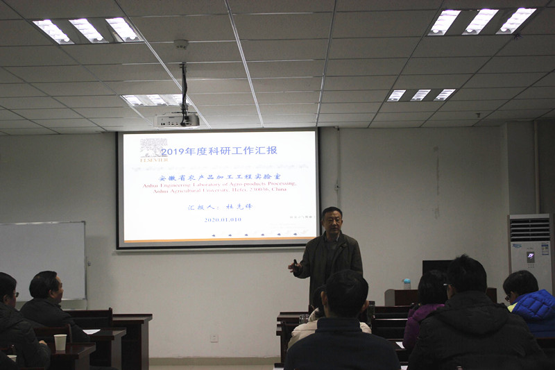 本网讯 1月10日上午,安徽省农产品加工工程实验室2019年度学术年会在工科楼259会议室召开。实验室全体师生60余人参加了本次年会。茶与食品科技学院副院长周裔彬教授和实验室常务副主任梁进副教授共同主持年会。