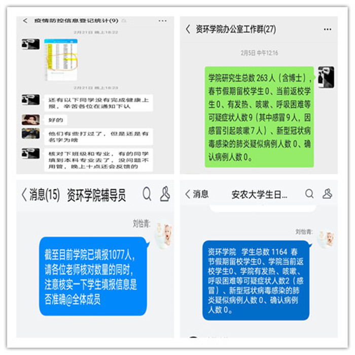 本网讯新冠疫情发生以来,资环学院辅导员队伍认真贯彻落实校院有关疫情防控工作要求,把全体学生生命安全和身体健康放在第一位,快速完善学生网格化管理机制,重点关注疫区学生以及在学业生活等方面有困难的学生,创新开展抗疫活动,协调配合线上教学开展,在做好疫情防控工作的同时有力保障了教育教学工作的顺利开展。