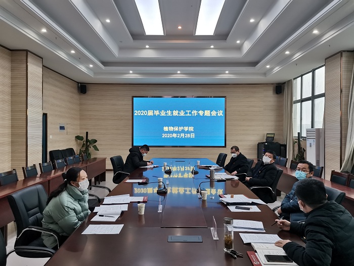 本网讯近日,植物保护学院召开2020届毕业生就业工作专题会议,研究制定“七条措施”,加大就业工作力度。会前,校党委常委、副校长操海群对就业工作提出明确要求。会议由院党委书记檀根甲主持,副院长潘月敏、周权和系主任、就业工作联络员等就业工作领导小组成员参加会议。副书记、纪委书记、副院长戴照力通报相关情况和工作安排。