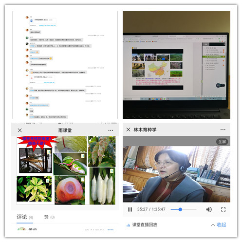 任课教师多路径打磨课程。学院各系部任课教师,自疫情发生以后,积极谋划网络教学,在学院的指导下,通过多个途径实施线上教学,建立qq群,实行上课打卡,保持老师与学生的密切联系。林学一流专业负责人黄庆丰教授以身作则,率先摸索线上教学方法,从超星录播教学到腾讯课堂直播教学,不断试讲;曹翠萍老师尽管年龄较大,但接受新鲜事物的尽头十足,几乎每天都与雨课堂技术平台联系,虚心求教,及时反馈、咨询;一批有线上教学经验的老师如武恒、陈名君等主动担当起线上教学技术指导,不厌其烦,有问必答。经过一周多的授课,学院督查、收集师生线上教学意见,师生普遍反馈,相比于线下教学,师生互动机会增加了不少,教学效果良好。