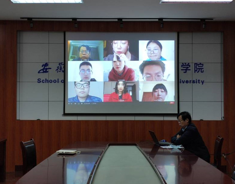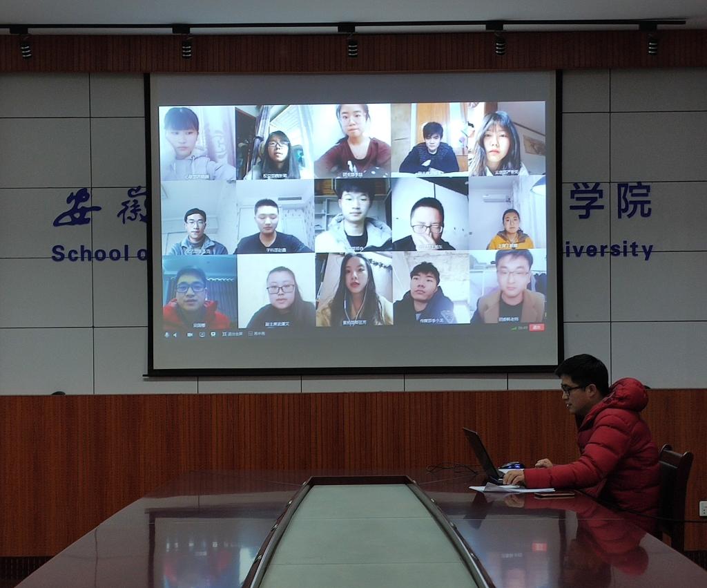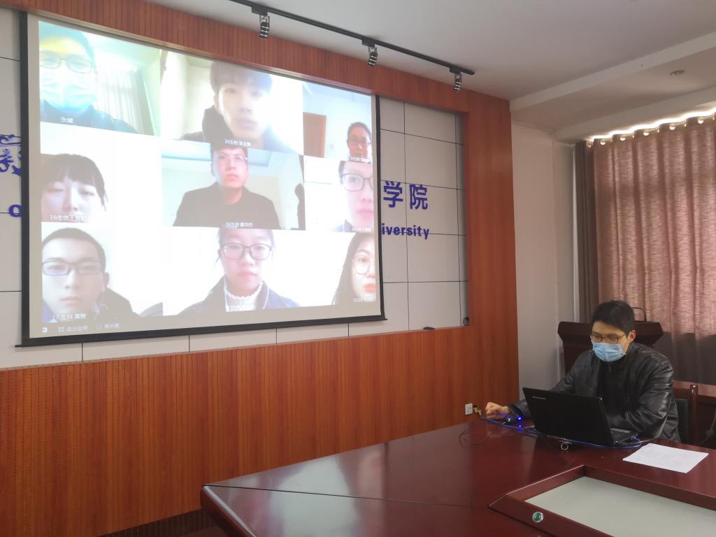 “在线课程你喜欢用哪种平台”、“你觉得线上教学有哪些地方需要改进和完善的”,副院长江海洋在与学习委员和毕业生代表连线时,很关心大家在家上网课的情况。同学们争先恐后地说着感受与收获。他向学生详细介绍了学院在线教学开展情况,说到,学院在认真落实各项防控措施的同时,一直在全力推进在线教育的顺利开展,积极探索完善线上教学模式,全院每一位老师都在攻坚克难,充分利用线上资源为学生上好课,坚持做到“停课不停教、停课不停学”。他勉励远方的学子:“全新的授课方式虽然对大家来说是一次挑战,但只要积极与老师沟通互动,及时总结经验,认真做好计划,保持优良的学风,一定能够学有所成。”并亲切叮嘱毕业生:“要和导师保持联系,抓紧时间认真查阅资料,为完成毕业论文、毕业设计做好充分准备;要充分利用线上资源,提升求职技能,积极参加网络招聘活动;期待你们早日返校、平安归来!”