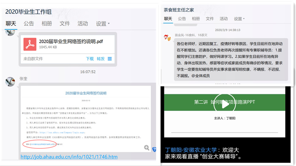 统筹谋划,集中力量开“好”课。延期开学以来,茶与食品科技学院师生同心协力,迅速进入“线上教学”模式。学院党委组织成立线上教学工作组,统一思想认识,落实方案,细化课程准备和线上教学任务要求,定期向学生开展线上问卷调研,详细了解线上教学出现的问题、学生需求、网络设施状况,多方面听取教学反馈意见并及时协调改进,确保课堂教学质量。同时,学院党支部书记牵头组建学生骨干群,及时反馈线上授课情况及授课过程中的突发问题,力争让每一位同学都获得好的学习体验。副院长周裔彬介绍说:“课堂教学中应有的环节,线上教学也会有,让学生身处家中也能感受课堂的氛围、学有所获。”