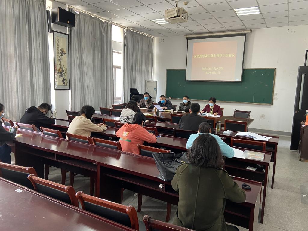 本网讯 为深入贯彻落实我校2020届毕业生就业工作推进会会议精神,做好疫情防控期间毕业生就业工作,3月23日上午,轻纺工程与艺术学院在学院四楼会议室召开就业工作领导小组会议,专题部署2020年度毕业生就业工作,学院全体党政领导、本科生及研究生毕业班班主任出席会议。会议由学院毕业生就业领导小组组长杜兆芳主持。