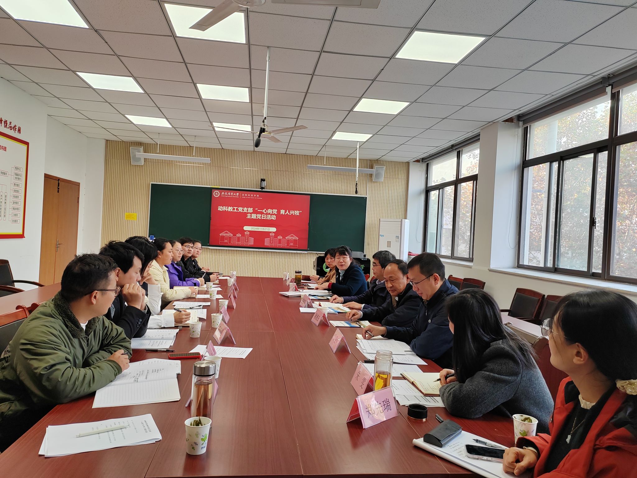 本网讯 11月21日,动物科技学院动物科学系教工党支部开展“一心向党 育人兴牧”主题党日活动。会议由动物科技学院党委书记沈兆梅主持,校党委常委、副校长蔡德军以普通党员身份出席会议,动科教工党支部全体党员参加。