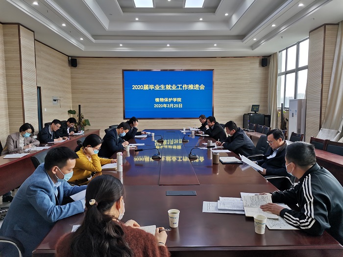 本网讯 3月25日,植物保护学院召开2020届毕业生就业工作推进会。校党委常委、副校长操海群出席会议。院领导、招生就业领导小组成员、正副系主任、部分研究生导师、毕业班班主任等参加会议。院党委书记檀根甲主持会议。