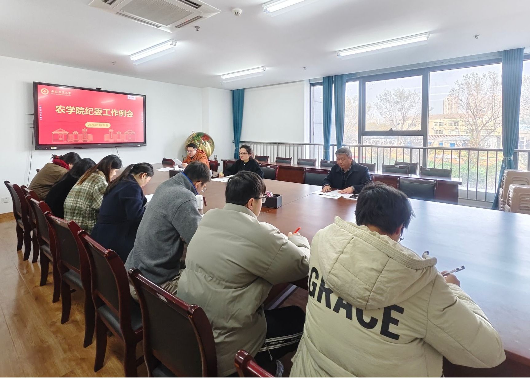 本网讯 11月22日上午,农学院在朝阳楼206会议室召开2024年第四季度纪委工作例会。学院纪委委员、各党支部纪检委员参加会议,会议由学院党委副书记、纪委书记冯峰主持。
