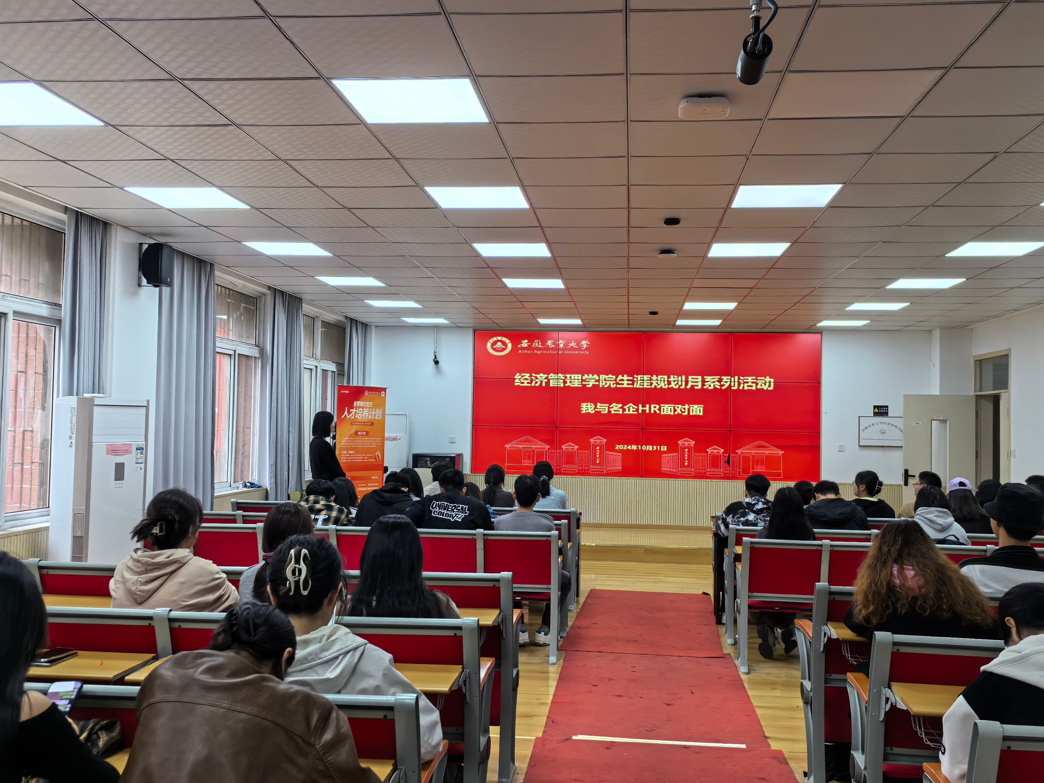 10月31日下午,学院在103智慧教室举办“我与名企HR面对面·职业生涯交流会”,小米集团安徽分公司人力资源经理宋玉玲主讲,2025届毕业生代表参加了此次活动。
