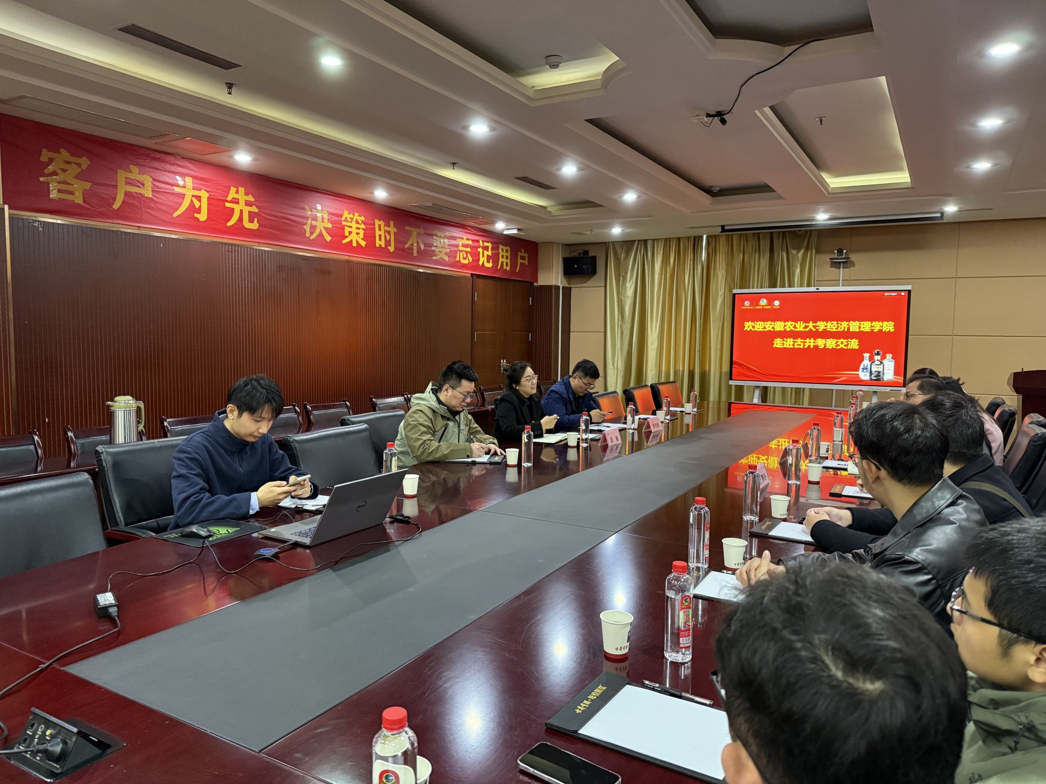 11月22日上午,经济管理学院党委副书记、纪委书记周涛带队赴古井贡酒合肥分公司,通过实地考察、座谈等方式,深入开展调研,并看望校友。部分本科毕业生、研究生毕业生和专职辅导员一同走访。
