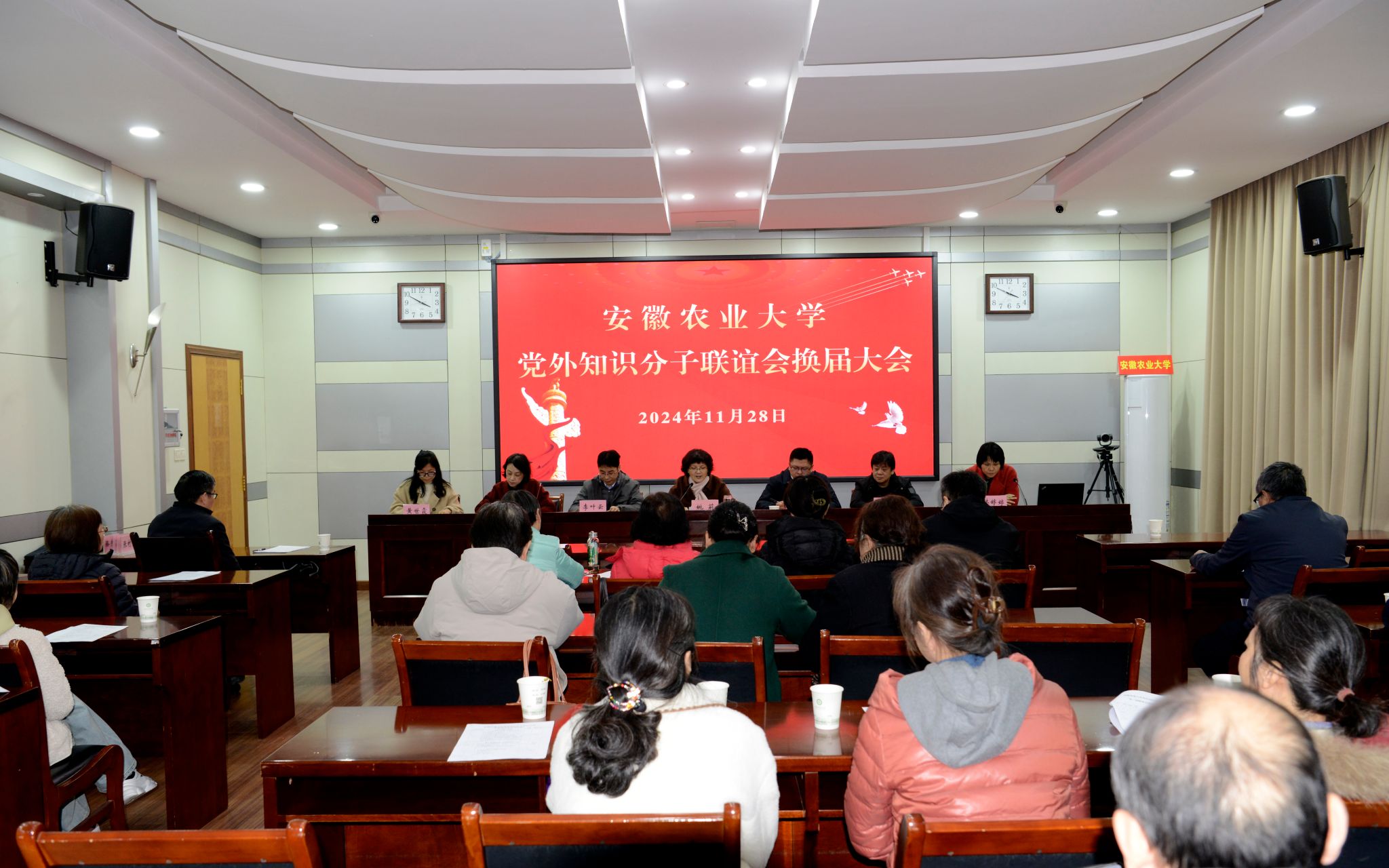党委统战部常务副部长姚莉对党外知识分子联谊会换届大会的成功召开表示热烈祝贺,对第一届党外知识分子联谊会过去的工作成绩做了充分的肯定。她希望新一届理事会要提高政治站位,加强政治引领,积极引导广大会员把学习贯彻习近平总书记考察安徽重要讲话精神作为当前和今后一个时期重大政治任务,自觉用习近平新时代中国特色社会主义思想凝心铸魂;要加强自身建设,提升组织活力,努力打造成为领导班子坚强有力、组织活力有效激发、职能作用充分发挥、会员积极性充分调动的联谊组织;要强化责任担当,发挥党外知识分子专业优势,围绕人才培养、学科专业建设、师资队伍建设、科研平台建设以及社会服务等中心工作积极作为,为建设农工商融合发展的特色高水平大学贡献力量。(图/刘兵 文/编辑/张村侠 预审/林婷婷 审核/郑雪林)