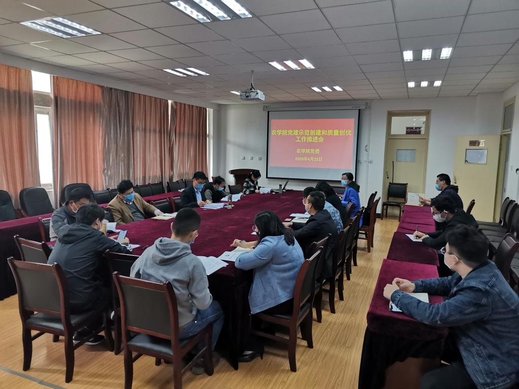 本网讯4月23日下午,农学院在十教518召开学院党建示范创建和质量创优工作推进会,组织部副部长葛红,学院全体党委委员、处级干部、党支部委员参加会议,会议由学院党委书记汪凤莲主持。