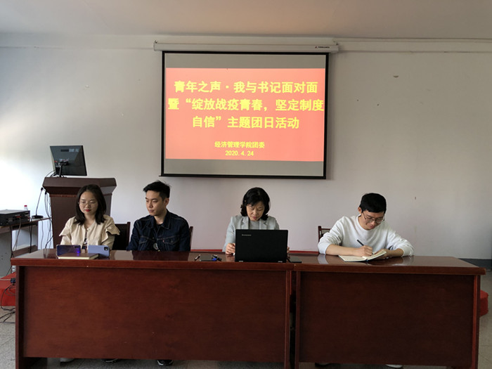 本网讯为深入学习宣传贯彻习近平总书记关于疫情防控工作的重要讲话和指示批示精神,引导青年大学生进一步坚定制度自信,4月24日下午,经济管理学院在线上开展“青年之声·我与书记面对面”暨“绽放战疫青春,坚定制度自信”主题团日活动。学院党委副书记、副院长、纪委书记倪健,团委老师,青马班成员与青年学生代表参加了此次活动。