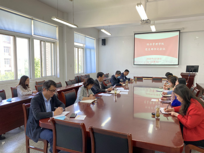 本网讯 4月28日上午,经济管理学院在经管楼304召开党委中心组(扩大)学习会议,集中进行了“一月一主题”学习讨论,并就党建“双创”工作和“三个以案”警示教育进行了安排部署。院党委委员、各党支部书记参加会议,会议由院长栾敬东主持。