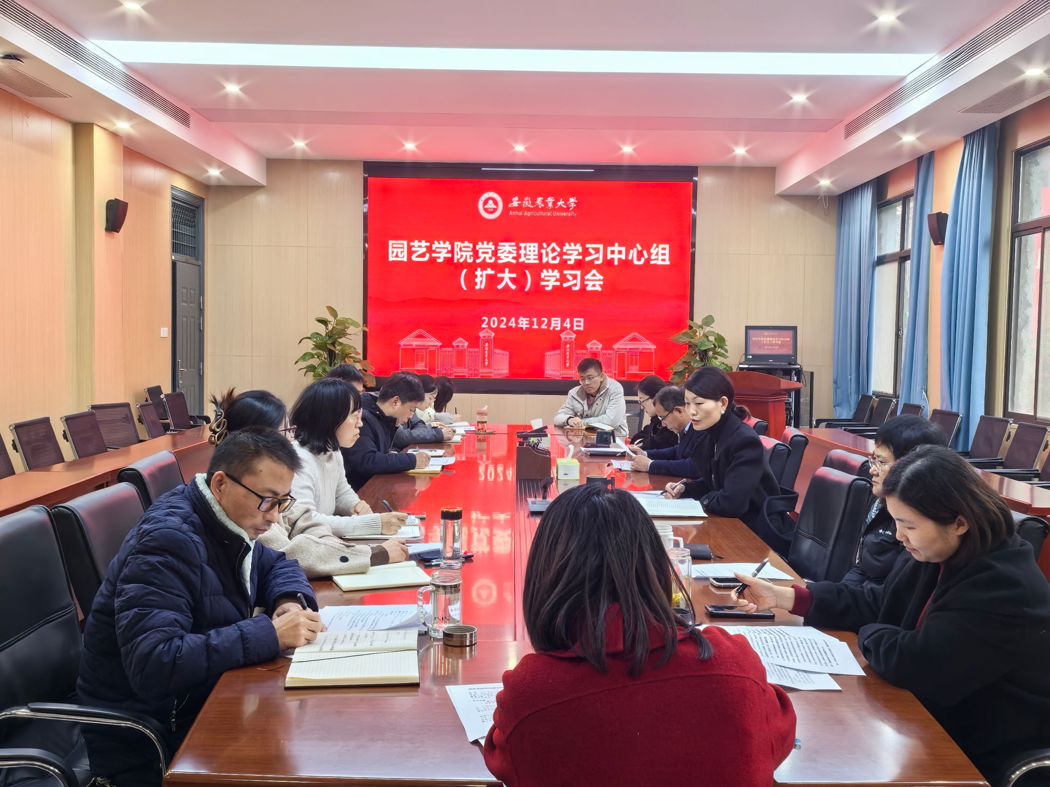 本网讯 12月 4 日下午,园艺学院在二教326会议室召开党委理论学习中心组(扩大)学习会。学院党委理论学习中心组成员、党支部书记及科级干部参加会议,会议由学院党委书记赵冠艳主持。