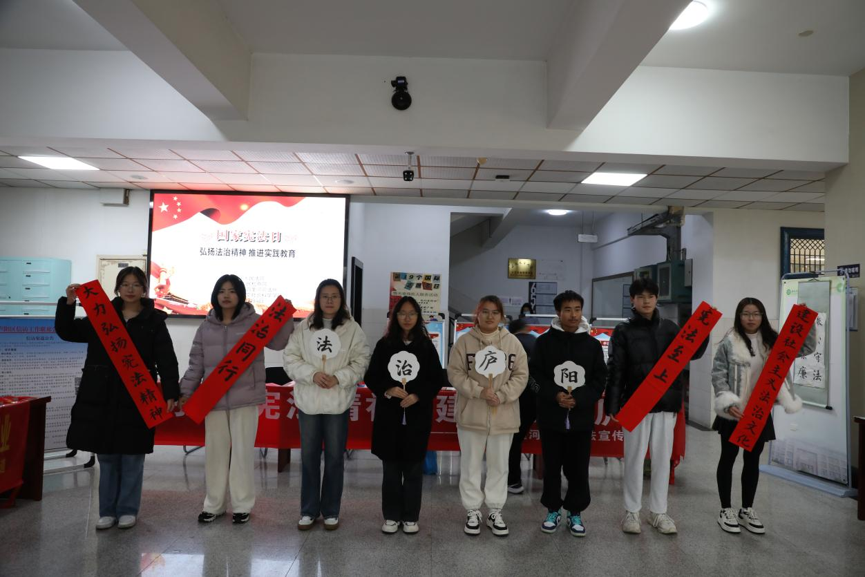 本网讯 为进一步加强校园法治建设,提高大学生的法律意识,营造崇尚法治、远离违法犯罪的良好氛围。12月4日下午,在第十一个国家宪法日来临之际,学院联合庐阳区人民法院、人民检察院、四里河司法所、妇联四家单位,在人文楼大厅举办“弘扬法治精神,推进实践教育”活动,活动吸引近百名学生参加。