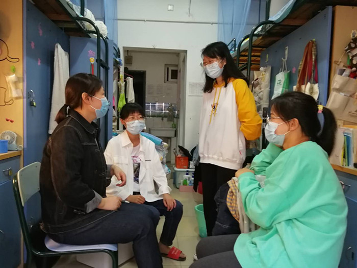 学院每天督促返校学生按时完成“一日三检”,填报在校健康信息,保证对返校学生健康信息掌握做到全覆盖。建立 “学校-学院-辅导员-宿舍”四级防控监督体系,在每个宿舍设立卫生健康委员,监督宿舍成员及时填报个人健康信息,一旦有学生出现健康异常,立即向学院汇报,并迅速处置。