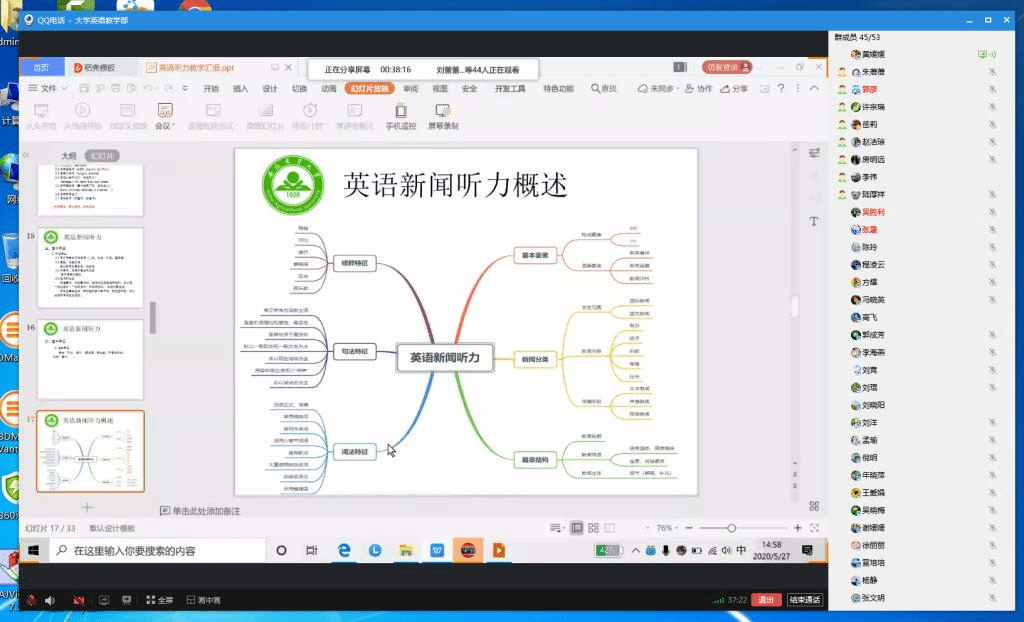 本网讯 5月27日下午,外国语学院大学英语教学部组织开展线上教学研讨,专题讨论新形势下大学英语视听说教学的现状、挑战以及应对策略,系部全体教师参加了线上研讨。