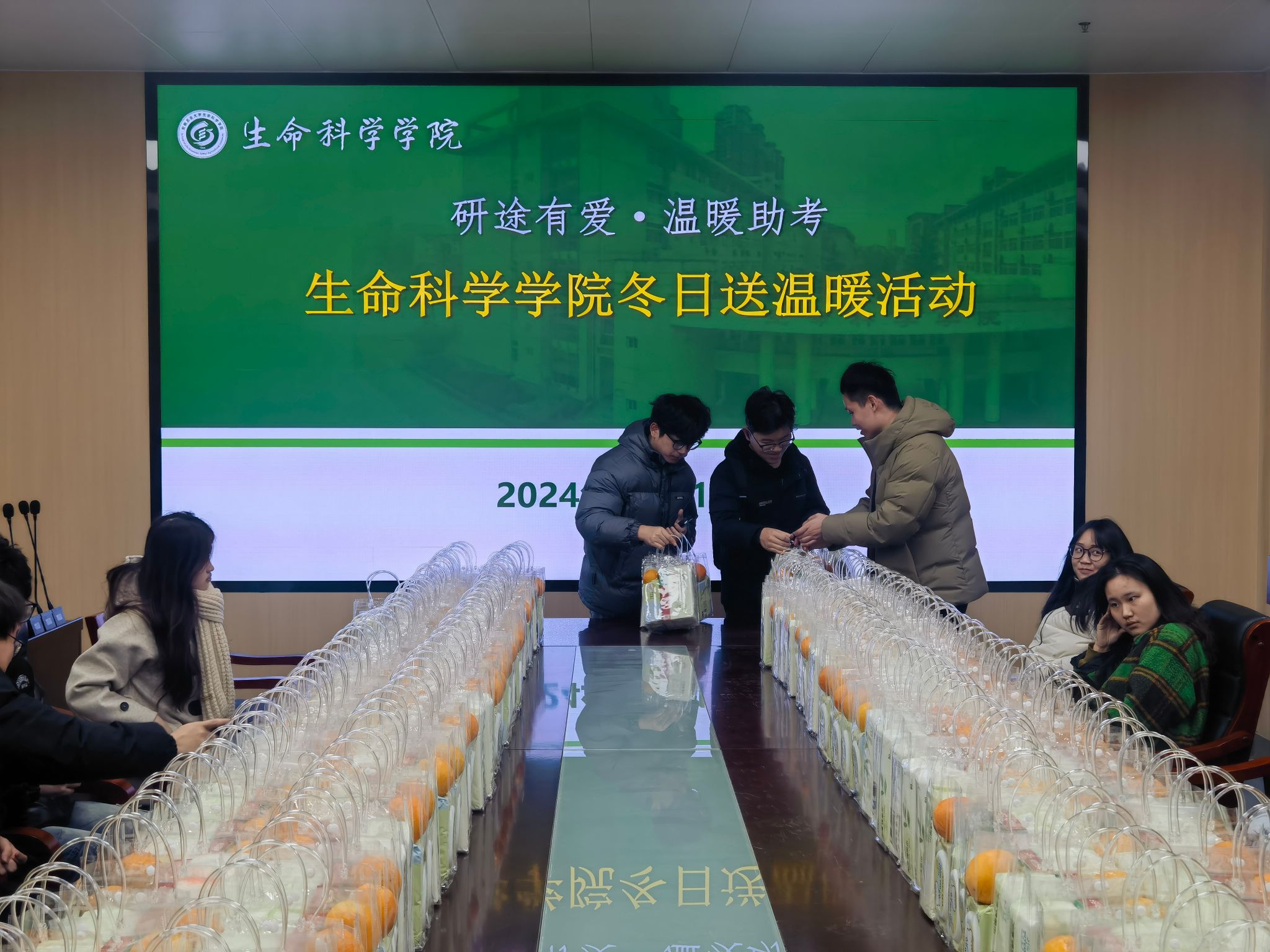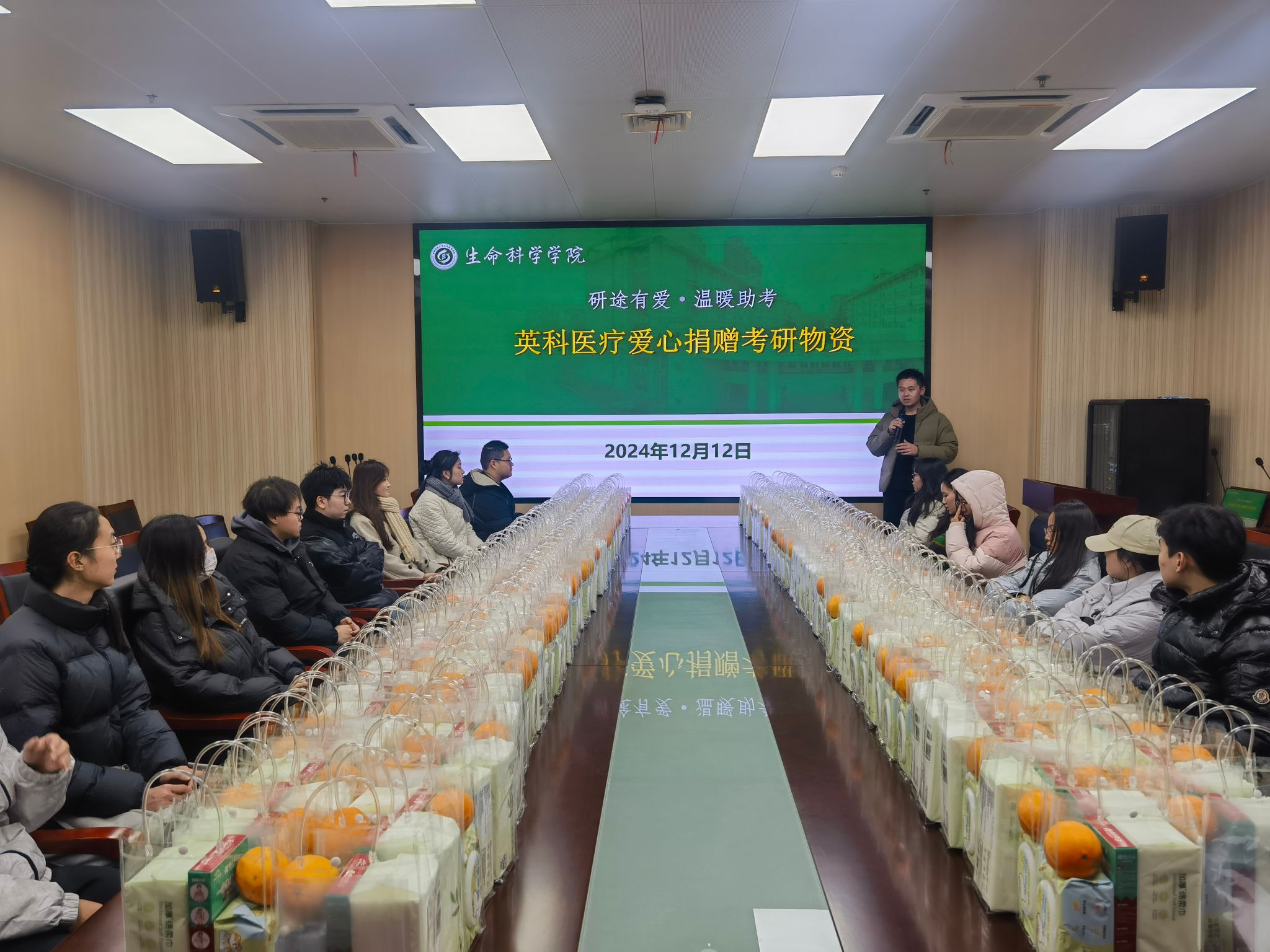 本网讯 为进一步增强2025届考研学子备考信心,提振复习冲刺阶段的士气与决心,在考研进入最后冲刺阶段之际,生命科学学院携手英科医疗科技股份有限公司于12月12日在生物科技楼B420为考研学子发放考研大礼包。英科医疗人力资源主管吴洋参加活动,毕业班考研学生代表参加活动。