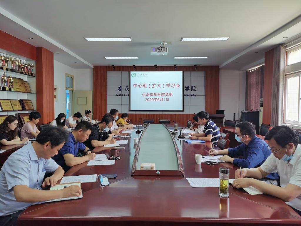 本网讯6月1日上午,生命科学学院在十教418会议室召开党委中心组(扩大)学习会。学院党委委员、党支部书记、副科级以上人员参加会议。会议由学院党委副书记、副院长吴国卿主持。