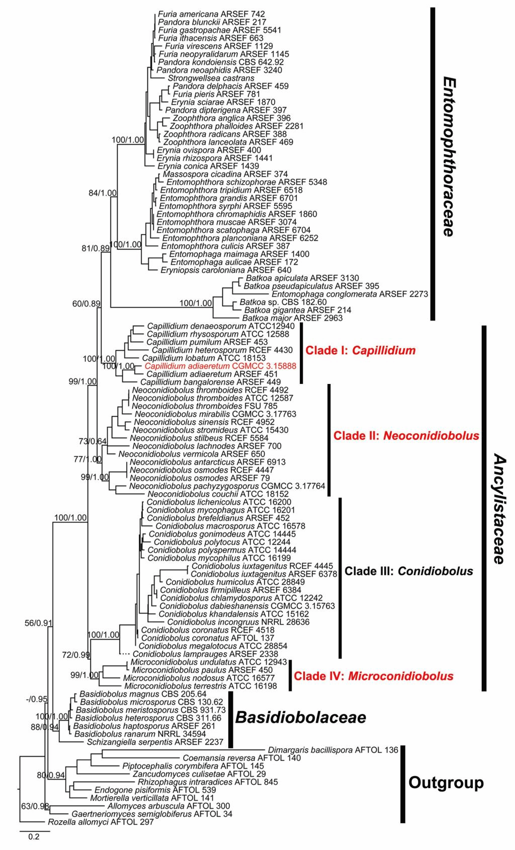 1.广义耳霉属Conidiobolus sensu lato的系统发育树