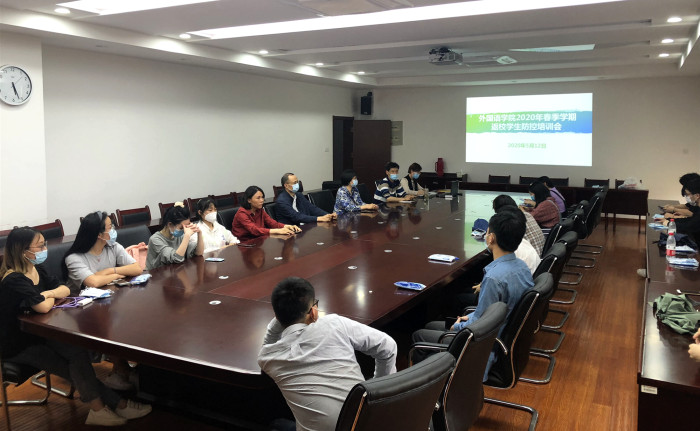返校学生团体心理辅导。5月12日下午,外国语学院2020年春季学期返校学生座谈会在外语楼506会议室召开,学院党委书记姚莉、院长孙志农、副书记黄庆华参加会议。会上,学院领导和返校学生就疫情期间生活、学习情况和返校后关心问题进行了座谈和交流。学生心理工作负责老师就学院疫情期间心理健康咨询工作作了详细说明和培训,并对返校学生进行了团体心理辅导,帮助学生尽快适应返校校园生活。