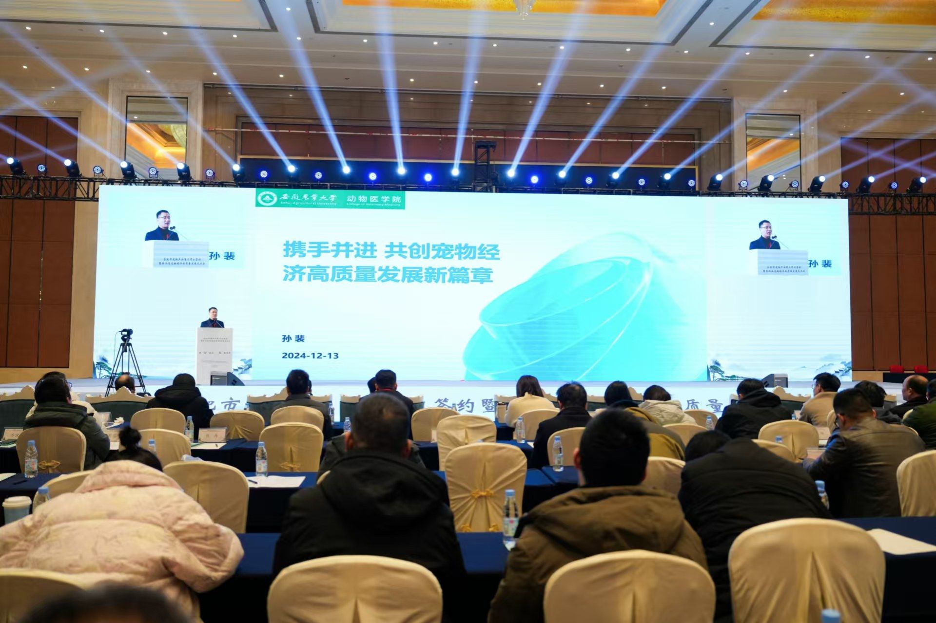 本网讯 12月13日,由合肥市农业农村局主办,安徽农业大学动物医学院、安徽省小动物诊疗协会、合肥市宠物行业协会、合肥市宠物饲养与诊疗首席专家工作室承办的合肥市宠物产业重点项目签约暨第二届宠物经济高质量发展交流会在合肥成功举办。合肥市政府副市长王连贵出席大会。学院党委书记吴永红、院长孙裴、副院长王希春及师生代表参加会议。