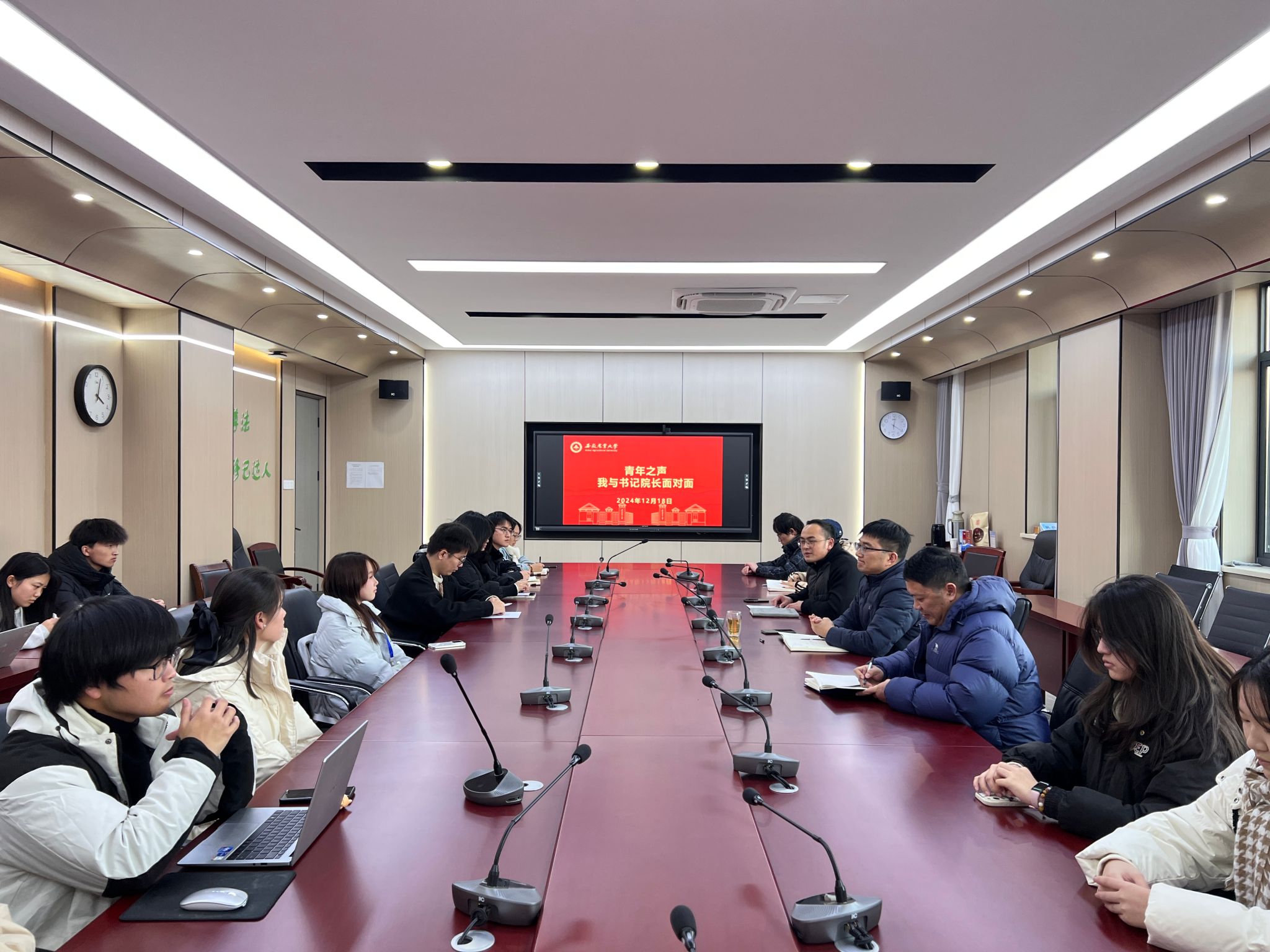 会上,与会领导认真倾听大家的发言,深入了解同学们在校的学习、生活等情况,听取了同学们的意见和建议,并逐一回应了大家的关切,鼓励同学们积极参加活动,勇于面对挑战,锤炼坚韧不拔的品格。并对同学们以主人翁的意识关注学院发展给予高度赞赏。