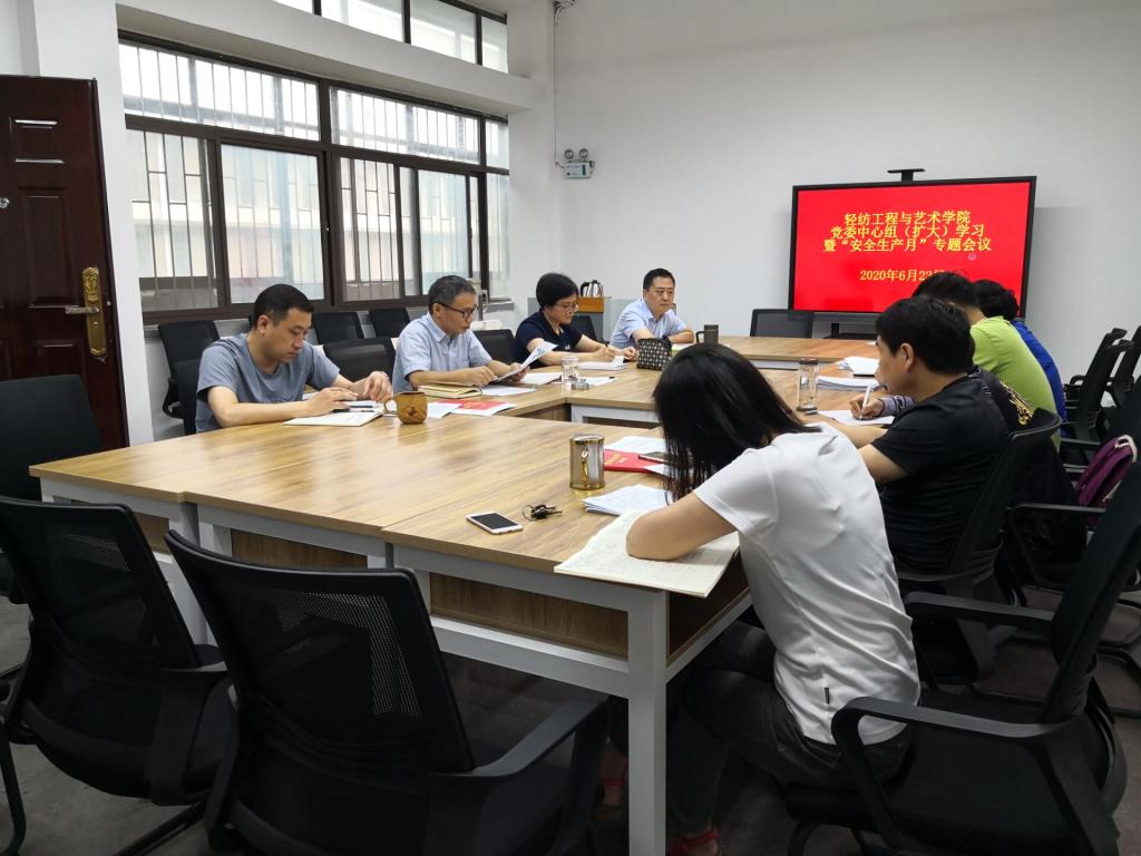 本网讯 6月22日上午,轻纺工程与艺术学院在院3A09室召开党委中心组(扩大)学习暨“安全生产月”专题会议,学院党政领导班子成员、系室主任、各党支部书记参加会议,会议由院党委书记王冬平主持。