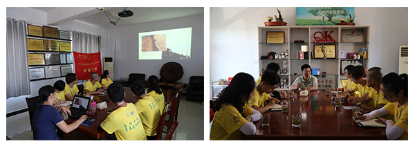 乔康药业有限公司董事长江庆伍对企业进行了简单的介绍,公司建有中药材基地3700余亩,是集中草药栽培、科研、生产、加工、销售于一体的中药材生产企业,多项产品通过中国、欧盟、美国有机认证。他希望企业能与学院继续进行长期稳定的合作,实现公司的转型升级。随后,技术总监郭翠平给学生上了一堂生动的就业创业课公司,并带领师生到工厂参观调研。